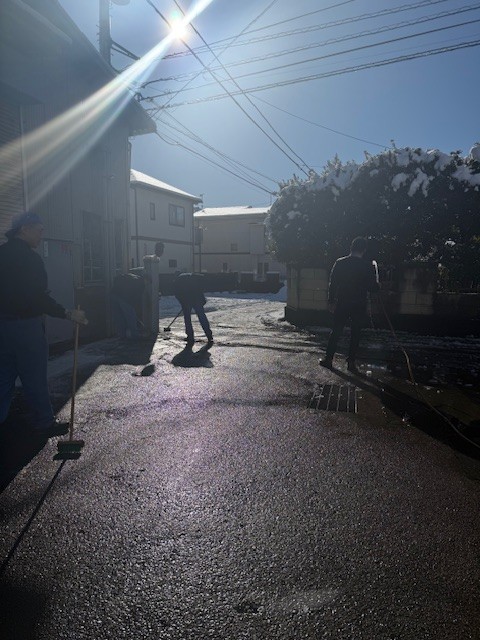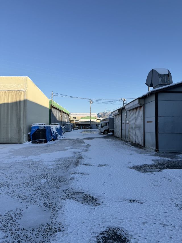 お客様への納期に支障をきたすことのないよう、構内通路や搬入出エリアを中心に社員で雪かきを行いました。