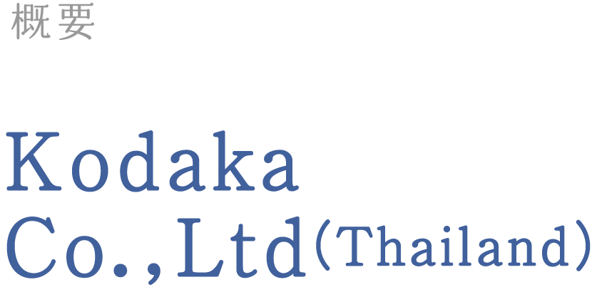 KODAKA Co.,Ltd Trade NameKodaka Co.,Ltd(Thailand) Location7/403Moo6 T.Mabyangporn,Rayong 21140 EstablishmentJanuary 17, 2014 Capital40Million(THB) RepresentativePresident Yasuhiro Kodaka contact addresstel:(66)038-027-579 fax:(66)038-027-583 ISO9001-2008 Acquired certification (June 20, 2014) Thailand factory 7/403 Moo.6, Tambol Mabyangporn, Amphur Pluakdaeng, Rayong 21140 Thailand